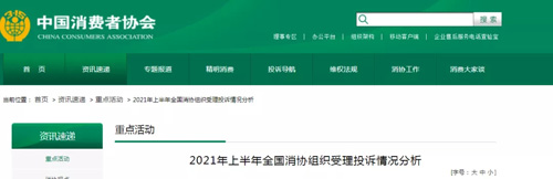 7月28日,2021年上半年全国消协组织受理投诉情况分析显示,根据全国消协组织受理投诉情况统计,2021年上半年全国消协组织共受理消费者投诉521,976件,同比下降7.04%,解决412,561件,投诉解决率79.04%,为消费者挽回经济损失75,089万元。