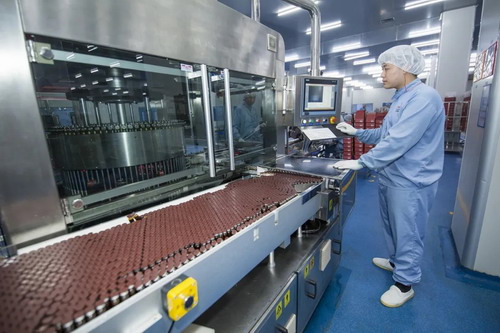 人难免会出错,所以无限极特意引进了全自动灯检机,通过摄像头精准拍摄每瓶口服液的图像,经过电脑智能比对、识别,进而剔除有瑕疵的口服液。