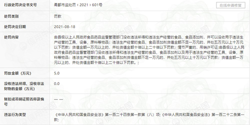 据悉,该处罚通知文号为甬鄞市监处罚﹝2021﹞601号,处罚决定日期为2021年8月18日。该公司违法事实如下:
