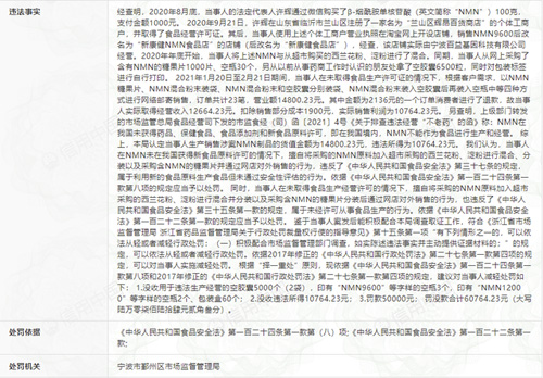 宁波百益基因违规生产NMN产品被罚6万余元