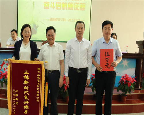 随后,三株各板块负责人向与会嘉宾系统阐释了各自的发展战略及全力以赴的决心。吴炳新和吴思林亲自表彰了“三株新时代复兴旗手”和三株各体系的先进个人表彰优秀。