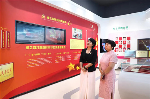 期间,调研组一行在劳嘉总裁的陪同下参观了绿之韵国际会议中心形象展示厅,详细了解了绿之韵集团的企业发展历程、生产经营状况、企业文化建设、文明创建机制以及在公益慈善、非公党建等方面的工作情况。调研组一行对绿之韵集团“家文化·水的精神”的企业文化及品牌特色党建工作给予了高度肯定和赞誉。