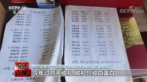 雅安市汉源县市场监管局执法人员 胡乐乐:现场当时有件事让我们比较震惊,他把他的这些保健品,还编成了歌曲,教这些老年人来唱,而且还有口号,今年过节不收礼,收礼只收白蛋白,肝肾疾病白蛋白,优生优育白蛋白,并且这些老年人唱歌的时候还非常积极,口号也喊得非常响亮。从老年人唱歌的熟悉程度来看,他们进行这些虚假的会销的宣传活动,已经不是一次两次。