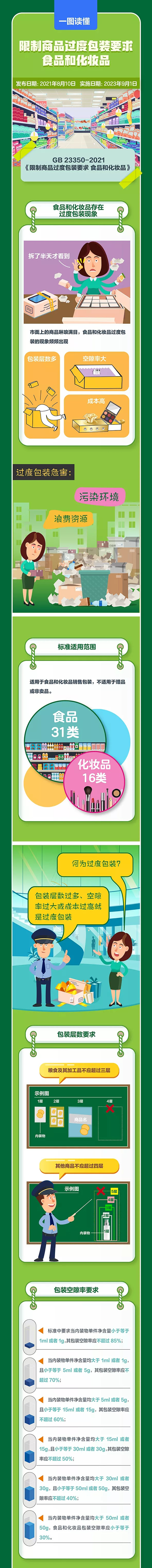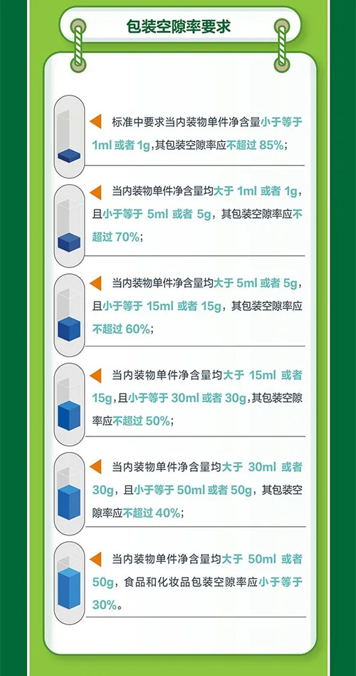 近日,为解决食品化妆品过度包装问题,市场监管总局(标准委)会同工业和信息化部等部门,组织相关标准化技术委员会和技术机构,对2009年版标准进行了修订,制定发布了新的《限制商品过度包装要求 食品和化妆品》(GB23350-2021)国家标准,其中将包装空隙率定义为包装内去除内装物占有的必要空间容积与包装总容积的比率,回归包装空隙率的本质含义。