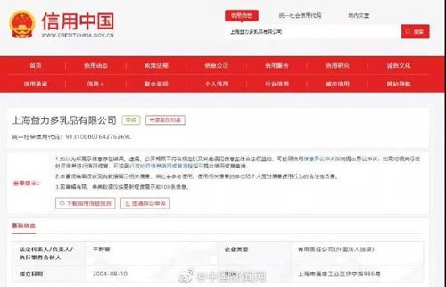 据信用中国网站消息,近日,养乐多关联公司上海益力多乳品有限公司被罚款45万元。
