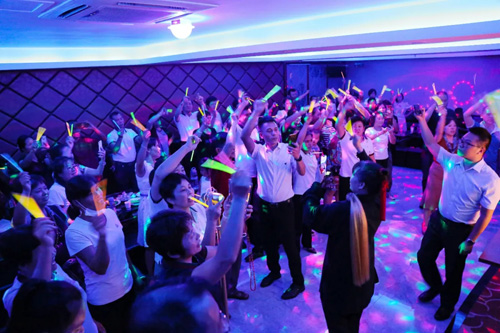 11日晚,所有与会者在7楼KTV大厅举行“迎中秋 庆国庆”晚会。