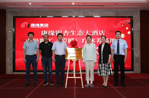 9月16日,“连云港市级职工(劳模)疗休养基地”授牌仪式在康缘银杏生态大酒店举行,连云港市总工会党组书记、副主席丁维杰、劳动和经济工作部部长许小兵、连云港市职工服务中心主任陈伟以及康缘集团工会主席陈玥、运营总监王玥参加了授牌仪式。