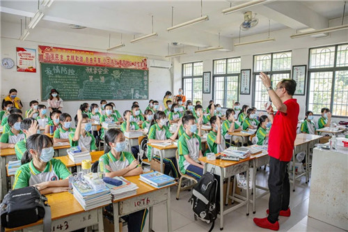 一位老师可以影响到很多的学生。为了给这所学校的学生们带去更多的支持,活动当天下午,志愿者们分为心理健康、科技、法律、艺术、家庭教育等五大主题,跟当地的老师一起开展教研活动。