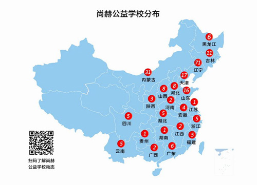 目前,尚赫公益学校达215所,遍及全国22个省、市、自治区,投入爱心资金5287万元;帮扶学童超过88061人。