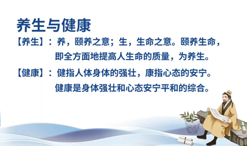 养生:中医的养生是专有名词,养的意思是颐养,生的意思是生命,颐养人体的生命,称为养生。颐养人体的生命是全方位的,既包括形体,也包括情绪、心态和外界的适应,包括人的道德,全方位的提高人体质量、生命的质量,这叫养生。中医养生的概念是非常宽的。