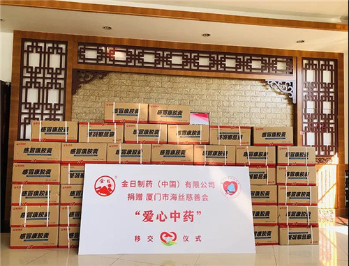 疫情无情,人间有爱。为全力打赢疫情防控战,发扬“一方有难、八方支援”的优良传统,9月26日,金日制药(中国)有限公司助力抗疫阻击战,向厦门市海丝慈善会捐赠纯中药“感冒康”胶囊,共43件,合计10310盒,价值401730元。该批中成药,将由厦门市海丝慈善会对接厦门市民政部门,向有需要的防疫抗疫单位调发。
