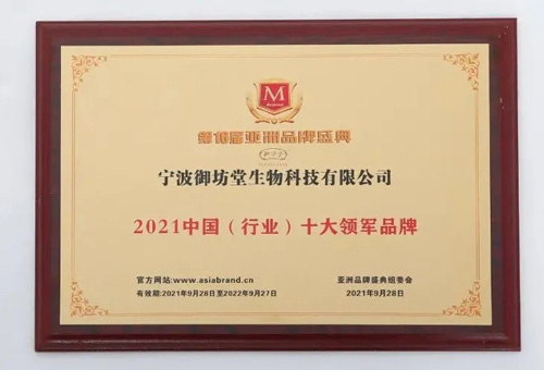 宁波御坊堂生物科技有限公司荣获“2021中国(行业)十大领军品牌”称号