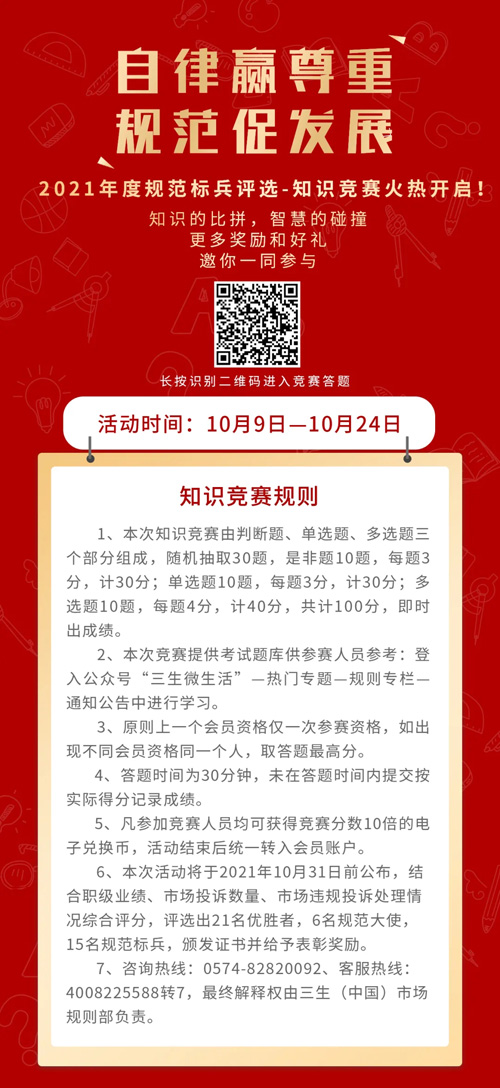 三生:2021规范标兵评选 知识竞赛开启
