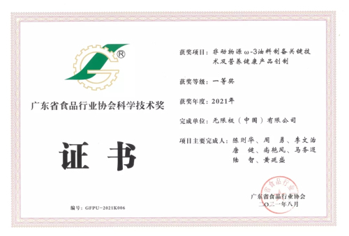 01 悦通核心技术“非动物源ω-3油料制备关键技术及营养健康产品创制”喜获广东省食品行业协会科学技术一等奖