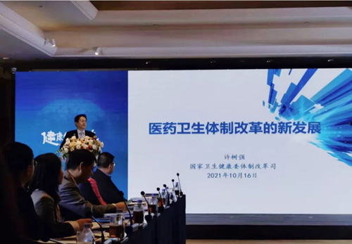 国家卫健委体改司司长许树强在正式闭门研讨之前,以《医药卫生体制改革的新发展》为题做主旨发言。许树强司长发言中表示,党的十八大以来,党中央把维护人民健康摆在更加突出的位置,健康中国上升为国家战略,全面推进健康中国建设。总书记指出,健康是幸福生活最重要的指标,健康是1,其他是后面的0,没有1,再多的0也没有意义。
