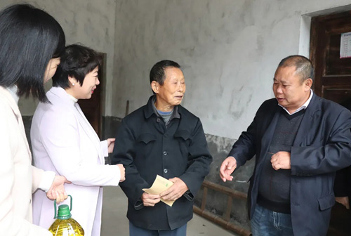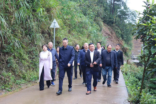 仪式过后,在胡家村村委干部的陪同下,长沙市工商联主席、市总商会会长康镇麟与绿之韵集团胡国安董事长一行前往安化胡家村响水洞公路扩改项目现场进行验收检阅,并先后走访了脱贫户家庭,为他们送去了慰问金、米粮和绿之韵健康产品。胡国安董事长家乡这条新修的路在青山绿水中盘绕,大大提高了村民们的交通安全感和幸福感,相信脚下这条公益路一定会成为家乡人民的共同富裕的重要支撑和幸福引擎。