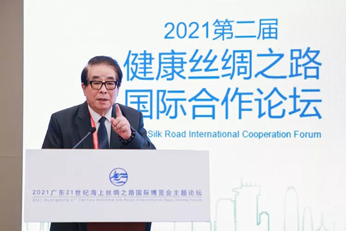 在2021广东21世纪海上丝绸之路国际博览会健康丝绸之路国际合作论坛上,和治友德全球健康推广顾问、国医大师张大宁教授在主题演讲环节,阐释了中医药养生对人类健康的福祉与责任。