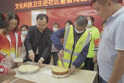 当天恰逢环卫节,志愿者们贴心地为文边村环卫工们准备了松花蛋糕和礼品。