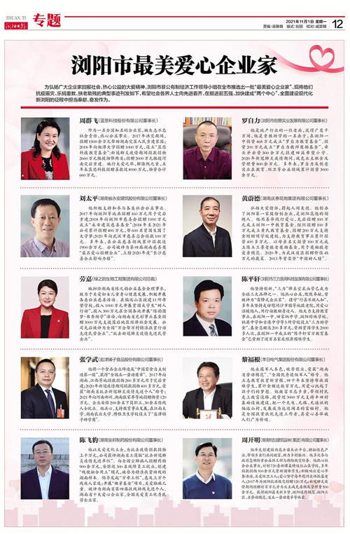 绿之韵劳嘉获评浏阳市“最美爱心企业家”称号