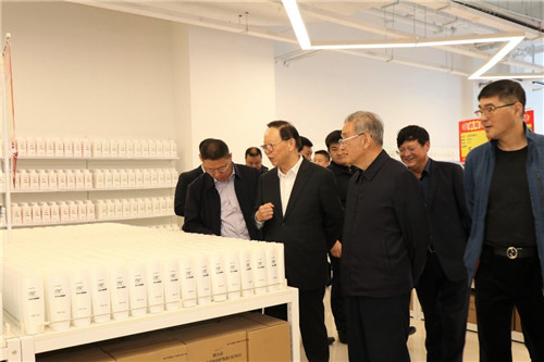 在视察隆力奇栟茶生产基地时,李金华仔细询问了生产、研发、销售等工作,高度赞扬了其智能化的生产流水线和生产工艺,亲切勉励要不断努力提升智能制造生产能力。