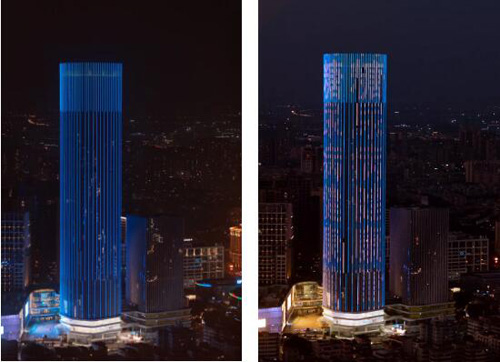 当晚,“人人享有糖尿病健康管理”的灯光秀,在完美金鹰大厦外立面滚动呈现,不仅成为伟人故里——中山一道亮丽的城市景观,而且与全国各地标志性建筑一起,闪耀着“认识高血糖,远离糖尿病”的抗糖希望蓝,助力健康中国行动。