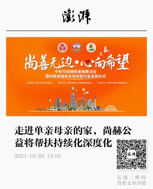 继10月16日后,10月27日,天津市尚赫公益基金会“尚善无边,心向希望”关爱单亲自强母亲行动再出发。