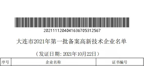 近日,全国高新技术企业认定管理工作领导小组办公室发布公告,双迪创新科技研究院被认定为大连市2021年第一批备案高新技术企业。
