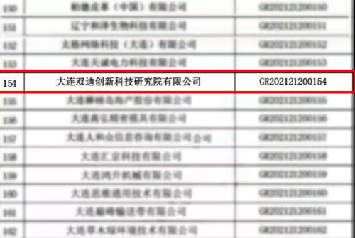 双迪创新科技研究院成为大连市高新技术企业