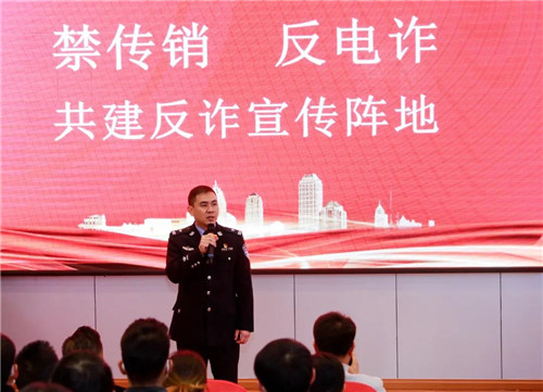 活动现场,张警官、吴警官等民警通过现场讲解的方式,向理想华莱员工宣传防范诈骗常识和相关法律法规知识,讲解何为电信诈骗,例举电信诈骗案例,告知电信诈骗案件的特点、诈骗方法、常用话术,让大家知道了电信网络诈骗的严重危害,以及如何识别、如何应对、防止上当受骗。现场吴警官还对理想华莱员工进行了防骗口诀宣传,三不一快口诀:不相信、不转账、不登录,快报警,提醒员工要注意防风险防诈骗,提高安全意识。