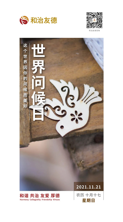 今天是11月21日——“世界问候日”。在第四次中东战争期间,为促进中东地区的和平的和平,来自澳大利亚的姆可马克与米切尔两兄弟自愿宣传并设立了这个节日。