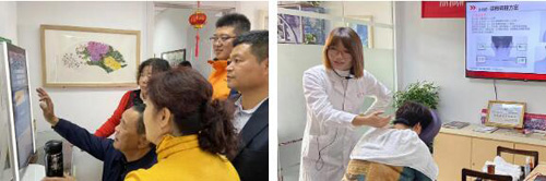 分公司讲师王淑慧为到场的新时代人讲解了养生知识及公司健康服务设备的使用技巧。大家通过体验脉诊仪、健康镜、扶阳罐、五脏灸等健康设备,进一步了解了公司健康管理解决方案的相关内容。