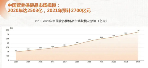 一块钱预防能省下十块钱的治疗!医学科普经年累月强调"预防>治疗",大众的防病、保健、养生意识也逐年增强。报告显示,中国营养保健品市场规模2020年达2503亿,2021年预计2700亿元。
