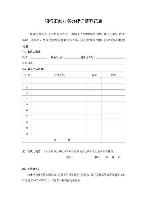 1、营销人员须明确告知顾客汇款用途及所购产品明细;