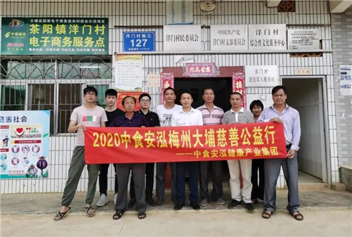 2020-2021年,中食安泓助力广东省梅州市省定贫困村大埔县石涵村、洋门村及石岭村累计捐赠近30万元,用于支持农户种植绿色农副产品,开设蜂蜜加工工厂,帮助乡村脱贫振兴,服务超1229户农民。