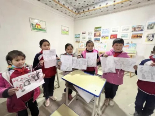 阿亚格乔达村村干部刘鑫和巴什乔达小学的老师阿拉木斯都是学美术专业的,他们利用工作之余在美术馆教授绘画。“带孩子们一起画画,让我看到了他们丰富的内心世界和无限的创作力、想象力。”刘鑫说,在教画的同时,他也会给孩子们讲画作背后的故事,引导他们理解每一幅画的文化价值,激起他们的创作欲望。