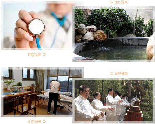 依托蒙山天然氧吧和医疗温泉生态优势,疗养院融合西方温泉医疗和东方自然医学方法,整合传统中医资源(针灸、按摩、推拿、拔罐、刮痧、艾灸、蜡疗、天灸等),引入现代医疗科技(航天康养技术、氢气理疗、氢浴理疗、智能睡眠检测等),以养为主,以疗为辅,中西互补、医养结合助力健康自然回归。