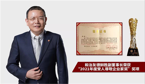 活动中,天津和治友德制药有限公司因多年来始终秉持诚信经营的理念,在全球大健康产业的强大影响力,积极推进企业可持续发展和践行企业社会责任方面的诸多贡献,荣获“创业中国•2021年度受人尊敬企业奖”、“创业中国•2021年度公益贡献奖”。和治友德副董事长鲜胜先生因在推动健康产业蓬勃发展,提升民众健康素养水平、促进社会和谐等方面所做出的贡献,荣获“创业中国•2021年度受人尊敬企业家奖”奖项。