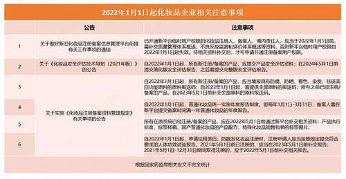 《化妆品注册备案管理办法》《化妆品注册备案资料管理规定》《化妆品新原料注册备案资料管理规定》《化妆品安全评估技术导则(2021年版)》等配套法规已于2021年5月1日开始施行,但从2022年1月1日开始,企业还需注意以下6大事项:
