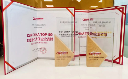 12月6日,2021年“企业社会责任教育项目优秀案例征集暨第五届CSR中国教育榜评比结果”正式发布。康宝莱凭借今年在CSR方面的优秀成绩一举获得2021年CSR中国教育榜“CSR CHINA TOP100 年度最佳责任企业品牌”奖项。此外,公司的品牌公益项目 - “天使听见爱”项目还荣获“CSR CHINA 年度最佳社会贡献”奖。