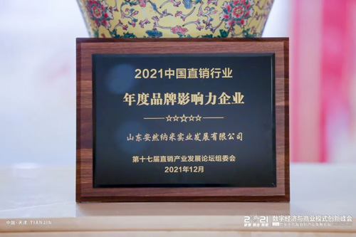 安然公司凭借行业领先的产品创新度以及对直销产业发展做出的杰出贡献荣获“2021中国直销行业年度品牌影响力企业”、 “2021中国直销行业杰出科技创新床品”大奖。