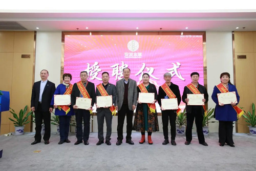 高教授为安发本草中医门诊部第一批名老中医师颁发聘书并合影留念