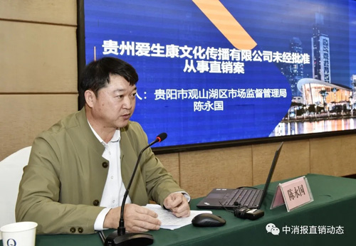 图为贵州省贵阳市观山湖区市场监督管理局碧海分局局长陈永国在讲评案件
