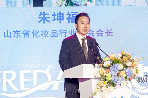 图:山东省化妆品行业协会会长朱坤福致辞