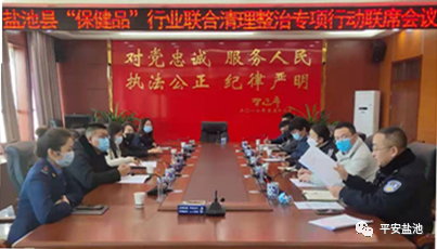 12月20日,盐池县公安局联合县委宣传部、法院、检察院、民政局、司法局、卫生健康局、市场监督管理局、消防救援大队等部门召开“保健品”行业联合清理整治专项行动联席会议,进一步统一思想,明确职责分工,科学分组实施。