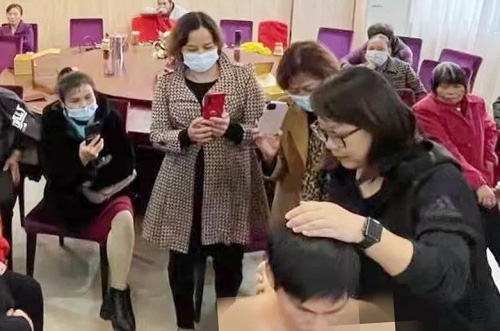 分公司员工向与会新时代人介绍了公司在健康管理与服务方面的规划,重点讲解了健康设备的操作手法以及相适宜的健康解决方案,并结合市场需求,以实操为主,进行一对一的手法操作演练。