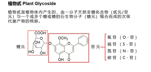肖蕾博士介绍,植物甙是植物体内产生的、由一分子天然非糖化合物(甙元/苷元)与一个或多个糖或糖的衍生物分子(糖元)缩合而成的次级代谢产物的统称,具有多种生理活性,如抑菌抗炎,解热镇痛,清除自由基等。