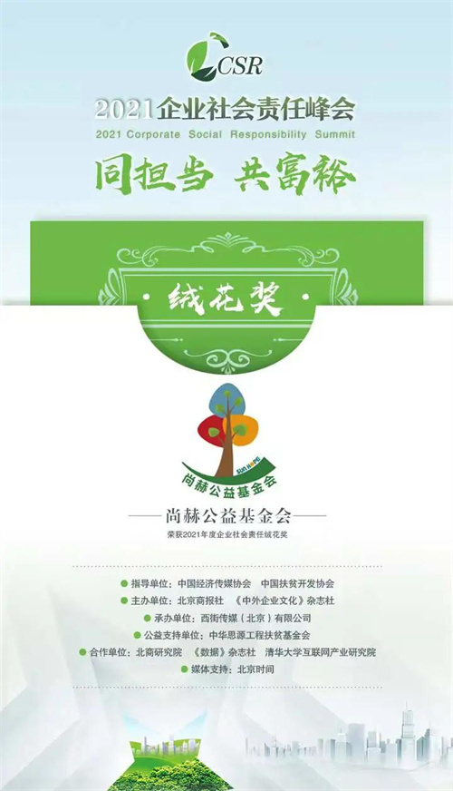 尚赫公益基金会荣获“企业社会责任绒花奖”