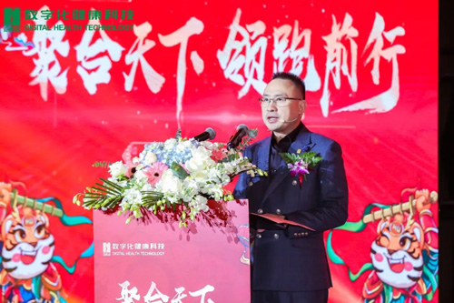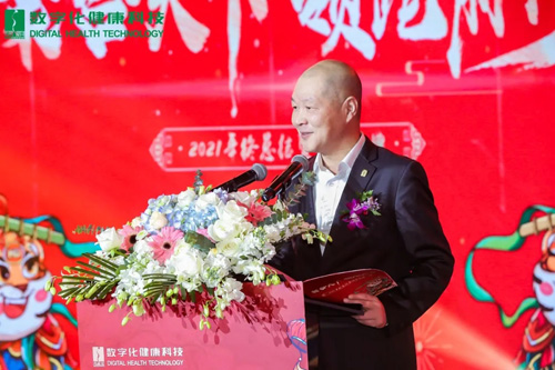 绿之韵集团市场营销中心总经理戴三省代表绿之韵集团上台致辞。他向前来参加此次庆典的各位领导、专家、贵宾以及来自全国各地的家人们表示热烈的欢迎!他表示:数字化健康科技,是集团战略布局的重要组成部分。数字化健康科技始终紧跟集团公司大健康产业发展战略,深耕数字化健康管理领域,积极向广大消费者传递“清、通、养健康管理工程”的先进理念,并取了喜人的成绩和成效。他衷心希望所有市场家人们能够一如既往地关注、支持并融入绿之韵事业,绿之韵也将继续强化各方面的服务和支持,努力为大家提供一个稳健、规范、可持续发展的事业平台,也希望在未来的日子里大家能同心协力、砥砺前行,为健康中国贡献自己的力量,共同谱写新的辉煌!