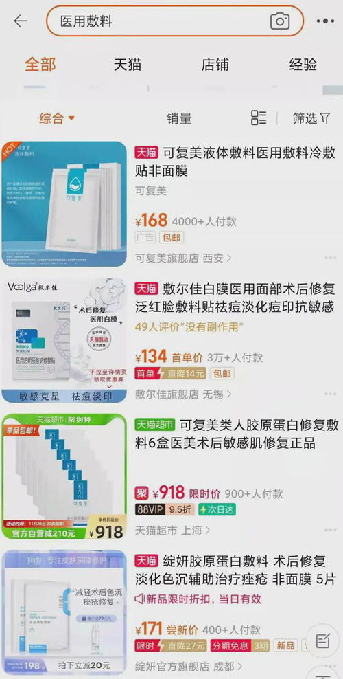 去年11月份,知名专业医疗美容平台更美APP因默许商家将“医用冷敷贴”、“医用敷料”称为“医用面膜”被罚款10万元;同年11月,一企业在天猫网店中销售一款医用冷敷贴商品并称其为“医用面膜”,构成虚假广告宣传违法事实,被罚款一万元……