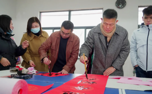 妙笔生花送祥瑞,翰墨留香迎新春。在新春佳节即将到来之际,徐建成和书法家徐圭逊、曹万峰回到滨海县正红镇大尖村,慰问家乡老人,并现场为老人们书写春联、迎春接福。